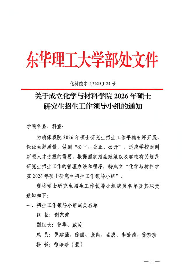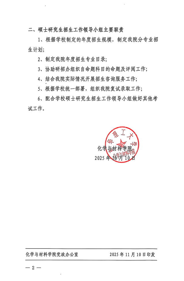 关于成立化学与材料学院 2026 年硕士研究生招生工作领导小组的通知