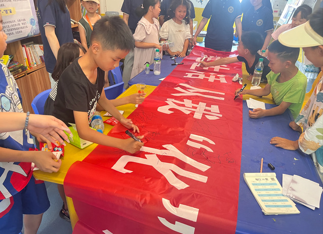 “原来化学这么有趣!”“我以后也想当科学家!”孩子们兴奋地分享着自己的感受。活动最后,实践队员们和小朋友们一起在“绿色生活 从我化起”的横幅上签上了自己的名字,并合影留念。