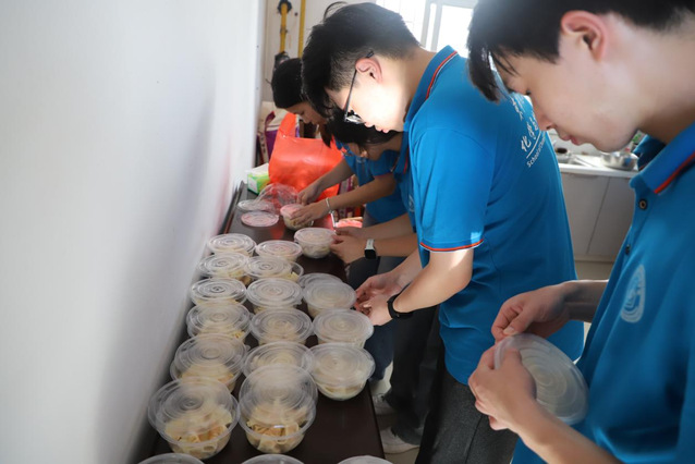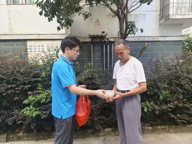 顶着将近40摄氏度的高温,实队员们在社区网格员的带领下,提着装好的一盒盒饺子,穿梭在社区一栋栋的楼宇间。一户户敲开高龄老人的家门,与老人亲切交谈,将充满爱心的饺子亲手送到老人们手中。接过香喷喷的饺子,老人们的脸上瞬间绽放出幸福的笑容,眼中满是感动与欣慰。同学们汗水浸透的后背与老人紧握的双手,构成这个夏天最动人的画面。